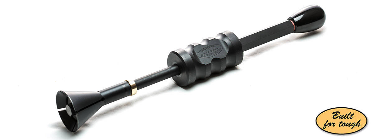 Durch Einsetzen und Verspannen der Vorrichtung in den Messbecher lässt sich dieser durch wenige Schläge mit dem Gleithammer problemlos entfernen.